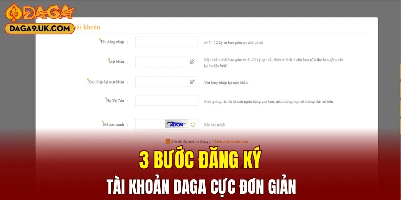 - Bước 3: Tiếp đến click vào ô “tôi đã đủ tuổi và đồng ý chính sách thành viên”, sau đó xác nhận kết thúc quy trình làm việc. Người chơi cần chờ đợi trong khoảng vài giây để hệ thống tự quản tài khoản DAGA thành công.